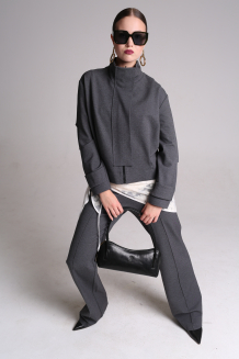 Дизайнерский джемпер прилегающего силуэта из цветной сетки-стрейч сложного, необычного кроя, который тремя слоями ткани создает идеальный силуэт фигуры. Используется драпировка и ассиметрия в покрое рукавов.